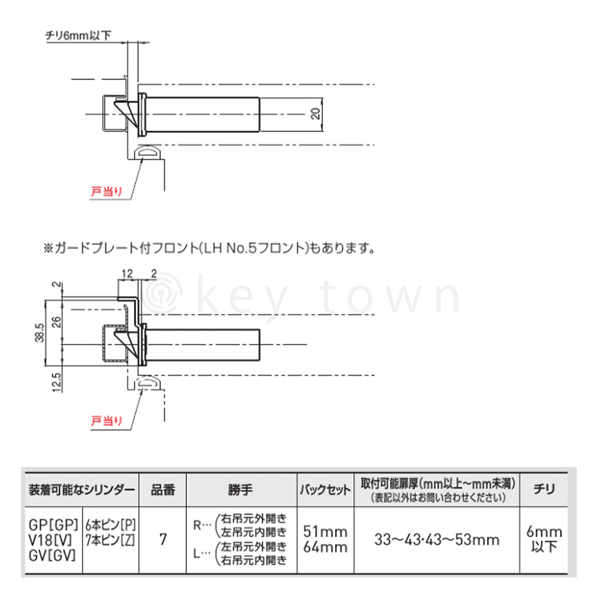寸法BS(mm)64 用途共用玄関、通用口など 仕様R4U24L、受座:24L 種別室内側:レバーハンドル、室外側:シリンダーレバーハンドル 形状レバー座:R4U座 勝手なし 適合扉厚(mm)33〜43 錠前V18シリンダー