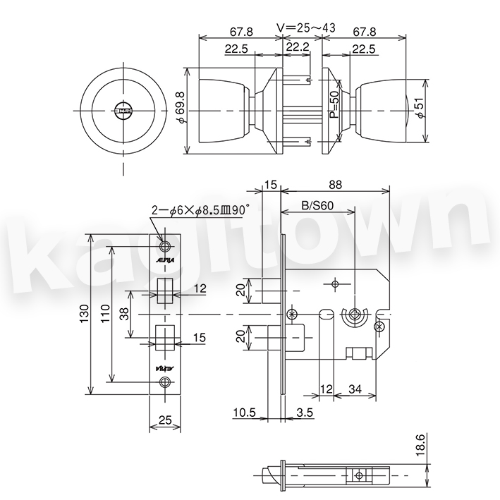 | 対応扉厚(mm) | 25〜43 |