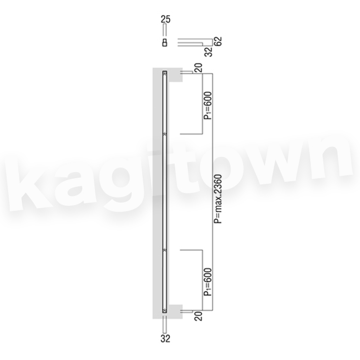 取付穴 φ10mm / ガラスドア取付時 φ16mm
