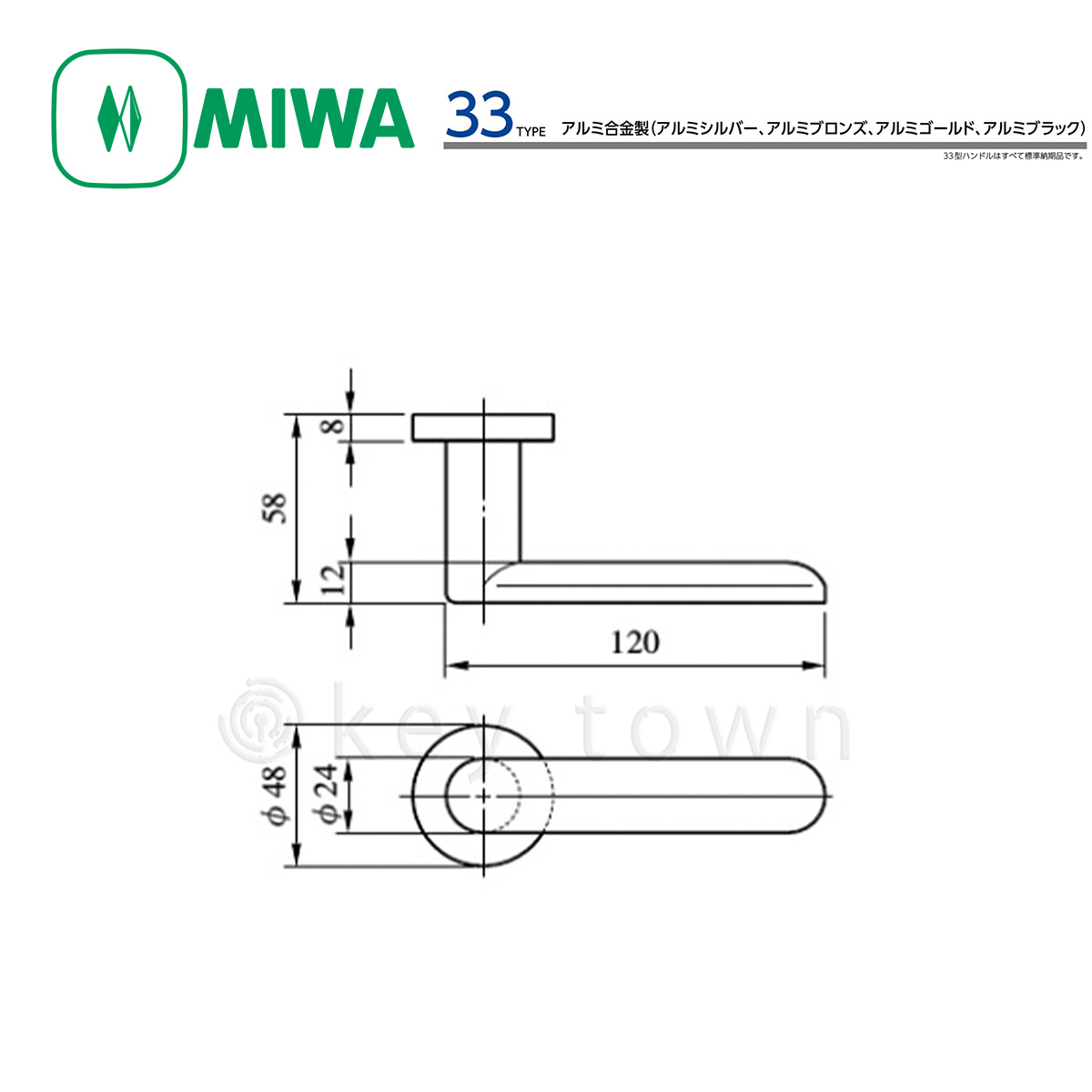MIWA 【美和ロック】 ハンドル [MIWA-33] 交換用 アルミ合金製 [MIWA 33]
